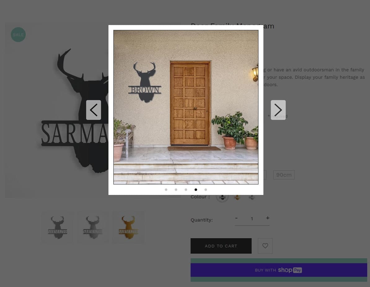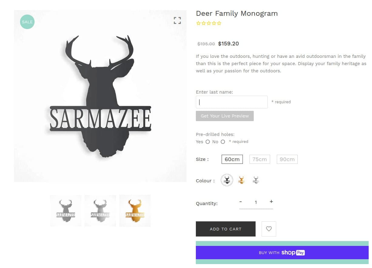 is a web application that showcases an augmented reality image of the chosen monogram sign, giving customers a visual representation of how it would appear in various indoor and outdoor settings